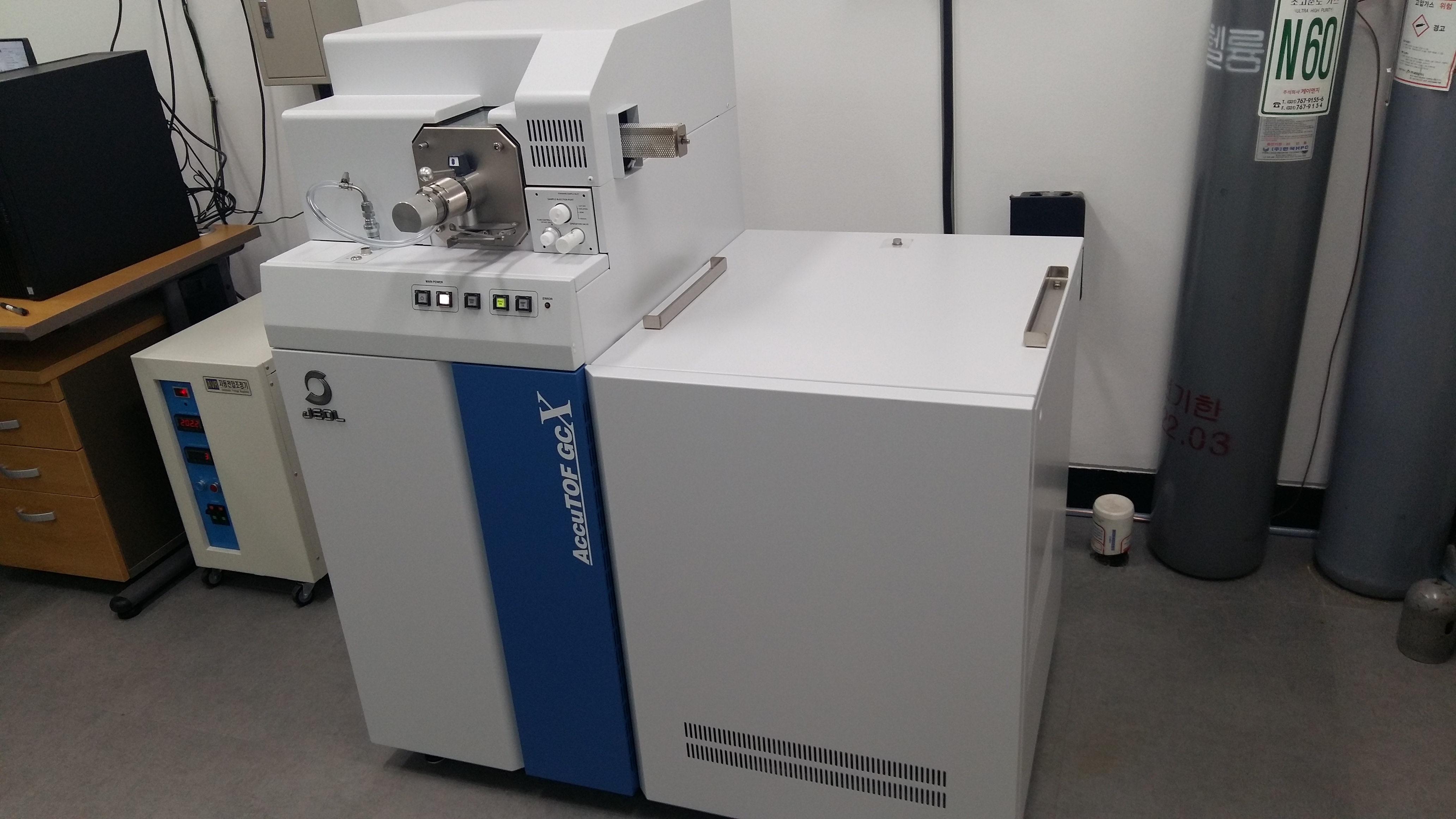 본 연구 장비는 TMP를 통한 고진공과 고감도 검출기를 이용한 고분해능의 비행시간형 질량분석기로 Direct Probe를 이용하여 합성고분자, 유기화합물, 촉매, 추출물 그리고 생화학 분야 시료의 분자량, 분자 구조 및 형태 파악, 동위원소의 분석, 신물질의 분자구조 결정 등의 정보를 제공하며 시료의 정성 분석에 필수적인 장비이다.