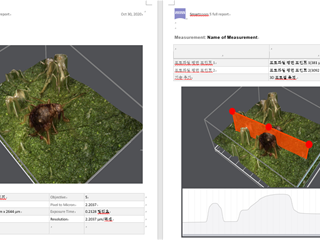 - 2D 와 3D로 조직의 표면구조를 관찰하고 원하는 부위의 높이, 길이 등 분석이 빠르고 쉬움