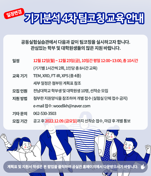 그동안 저희 공동실험실습관 기기를 이용해주셔서 깊은 감사의 말씀 전합니다.